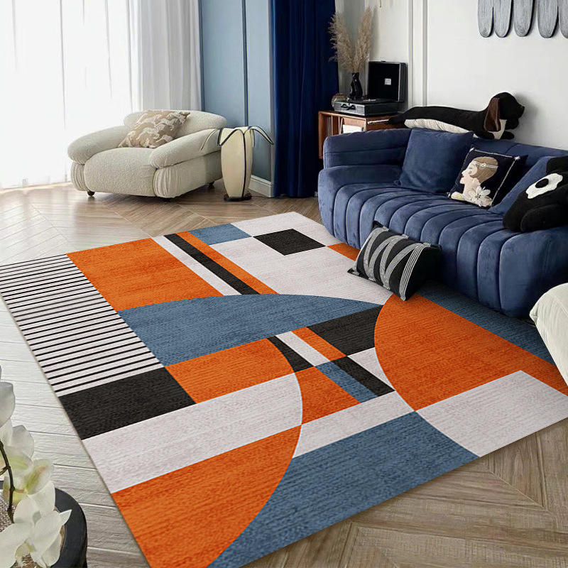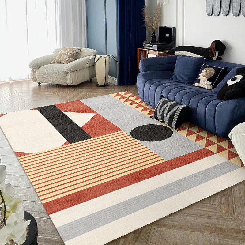 พรมปูพื้นลายเรขาคณิตสมัยใหม่ รูปทรงสี่เหลี่ยมผืนผ้า ทำจากเส้นใยโพลีเอสเตอร์ สำหรับห้องนั่งเล่น ใช้ในบ้าน