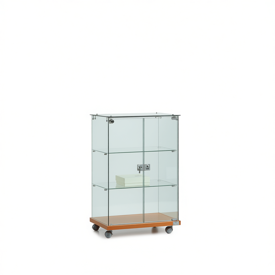ตู้โชว์กระจกทันสมัย ขนาด 60x40x90 ซม. พร้อมประตูล็อคได้และฐานล้อเลื่อน สำหรับจัดเก็บในห้องนั่งเล่น