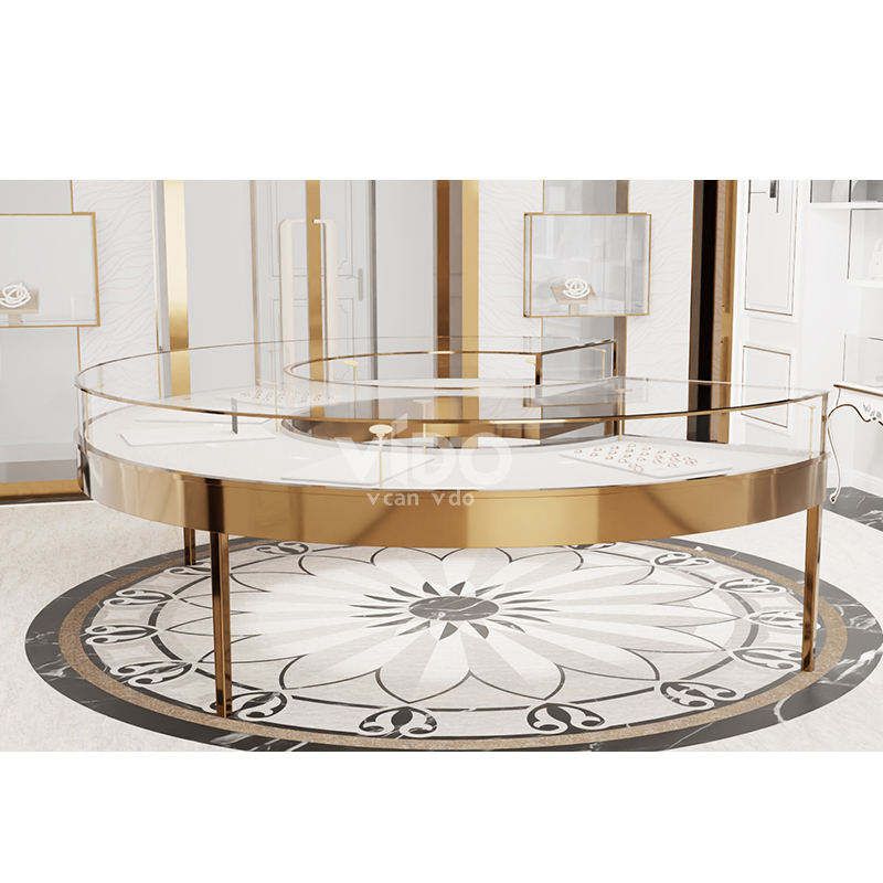 ตู้โชว์เครื่องประดับกระจกทันสมัยพร้อมไฟ LED ตู้โชว์เครื่องประดับแฟชั่นดีไซน์เคาน์เตอร์สำหรับโชว์รูมร้านค้าปลีก