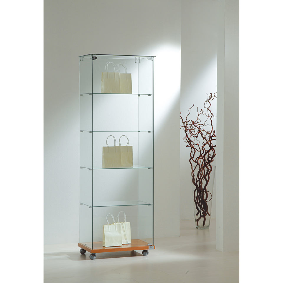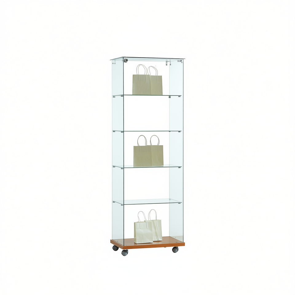 ตู้โชว์กระจกโมเดิร์น 60x40x180 ซม. พร้อมชั้นวาง 4 ชั้น และฐานล้อเลื่อนสำหรับโชว์ในห้องนั่งเล่น
