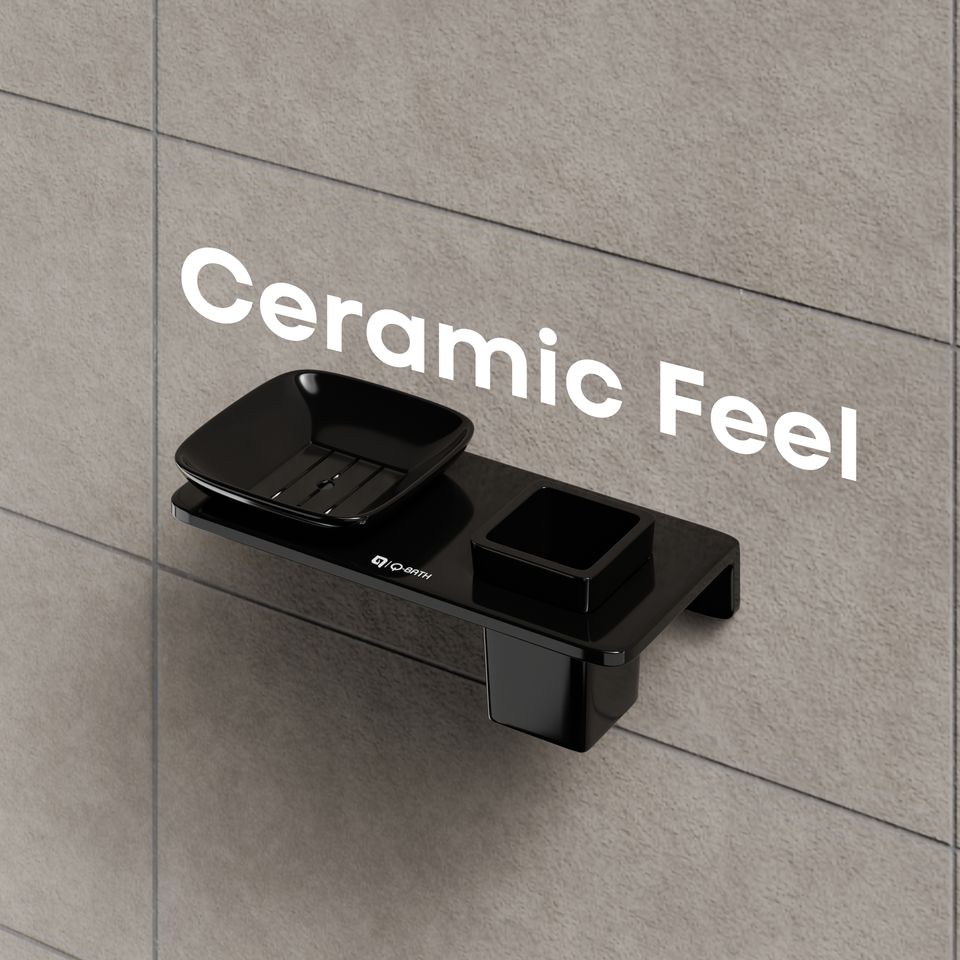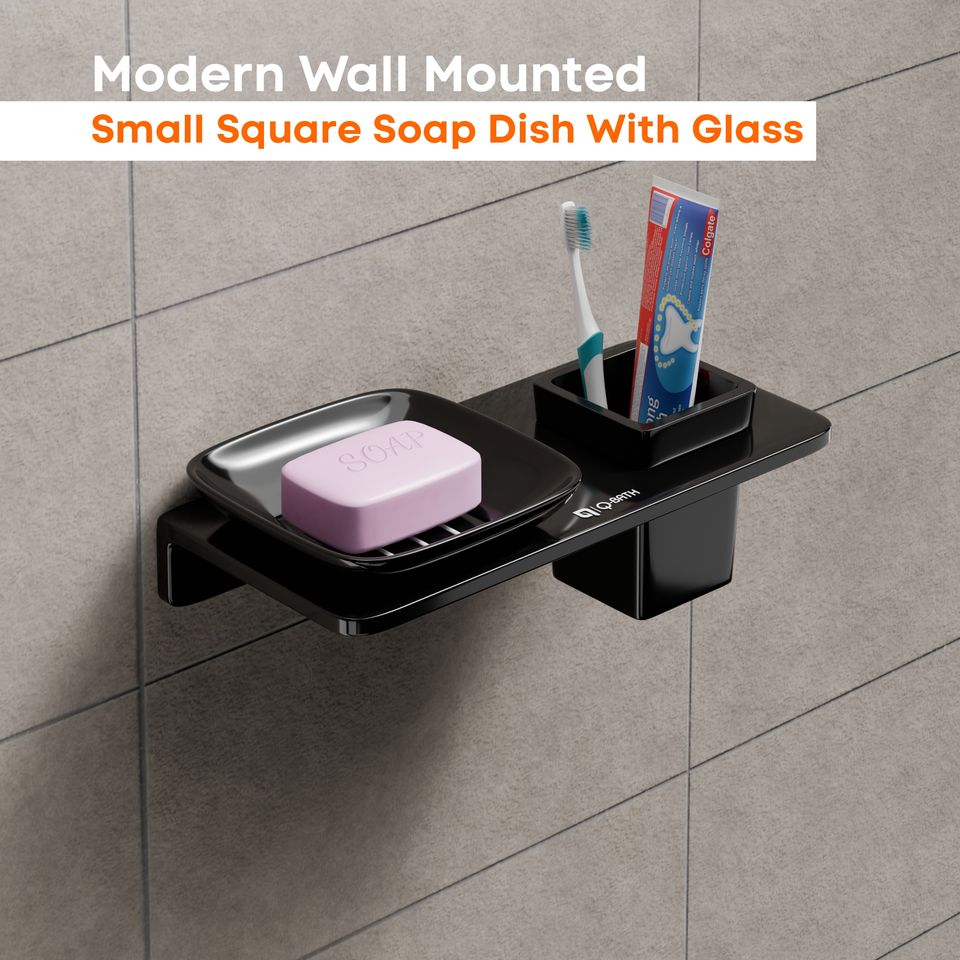 ที่วางสบู่แก้วแบบทันสมัยพร้อมถาดสี่เหลี่ยมแบบถอดได้และขายึดสีดำด้าน ป้องกันสนิม ติดผนัง ประหยัดสบู่ สำหรับห้องน้ำ