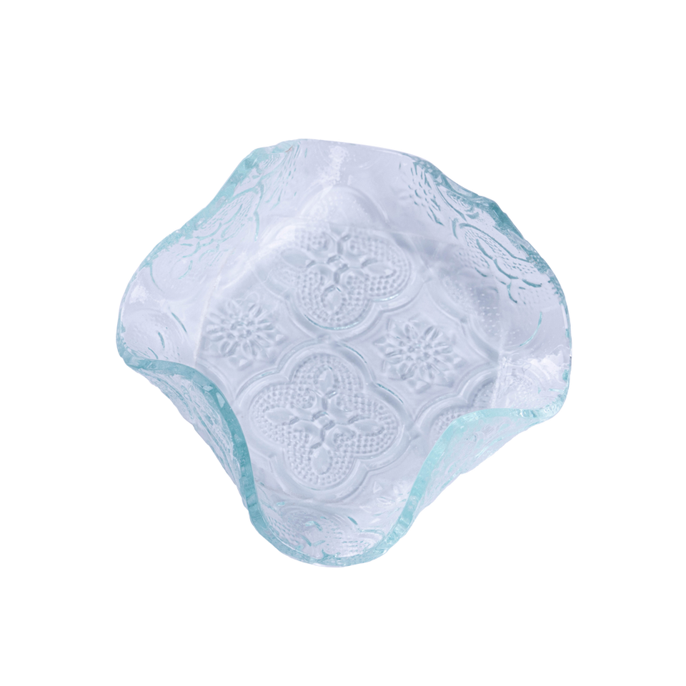ชื่อผลิตภัณฑ์:เชิงเทียนแก้วลายดอกไม้ขอบร่อง