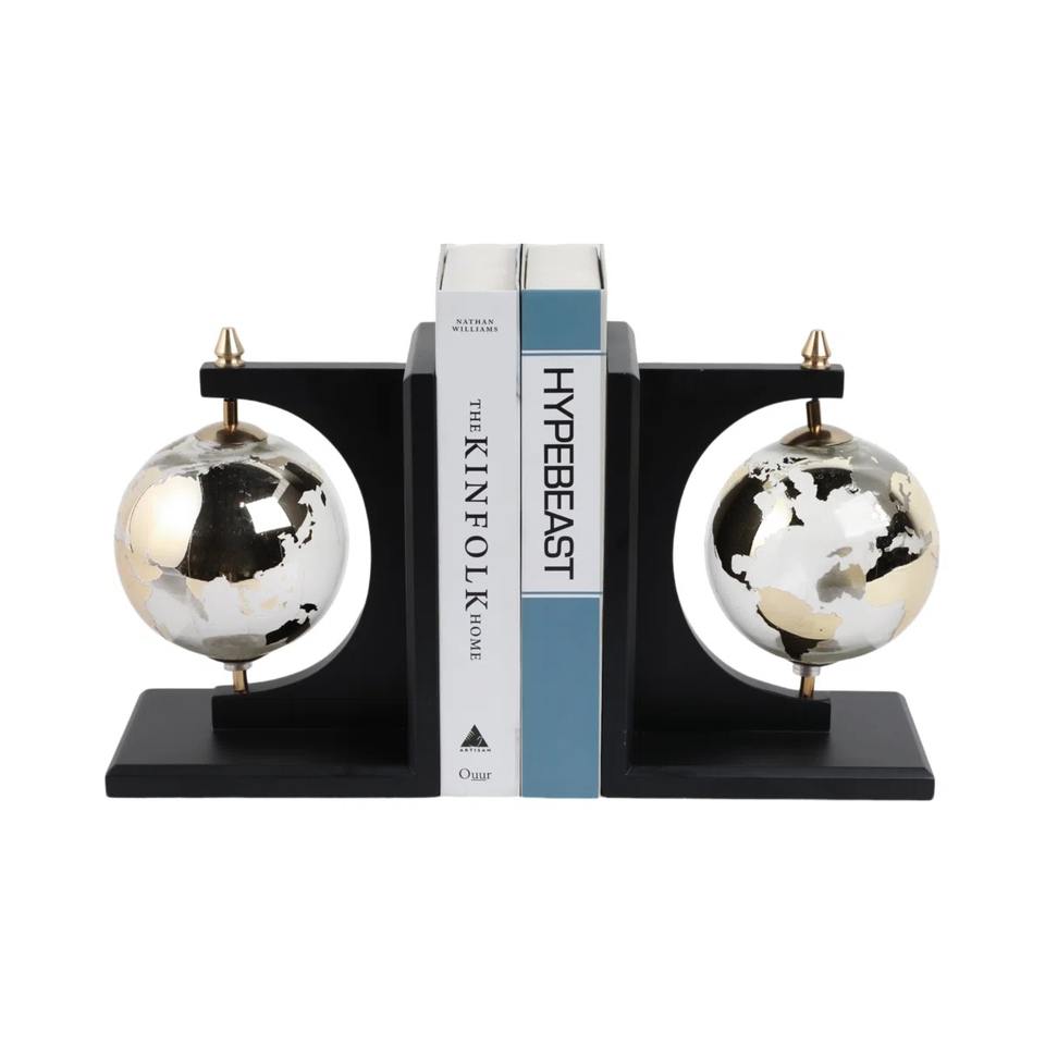 Modern Globe Bookends Set Aluminum Frame Handcrafted Metallic Silver Gold Finish Nautical Travel Decor Multi-piece Heavy