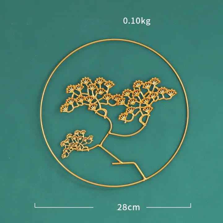 งานศิลปะติดผนังรูปต้นบอนไซสีทองสมัยใหม่ วงกลมเหล็กตกแต่งสไตล์เซน สำหรับตกแต่งผนังสำนักงานและห้องนั่งเล่น