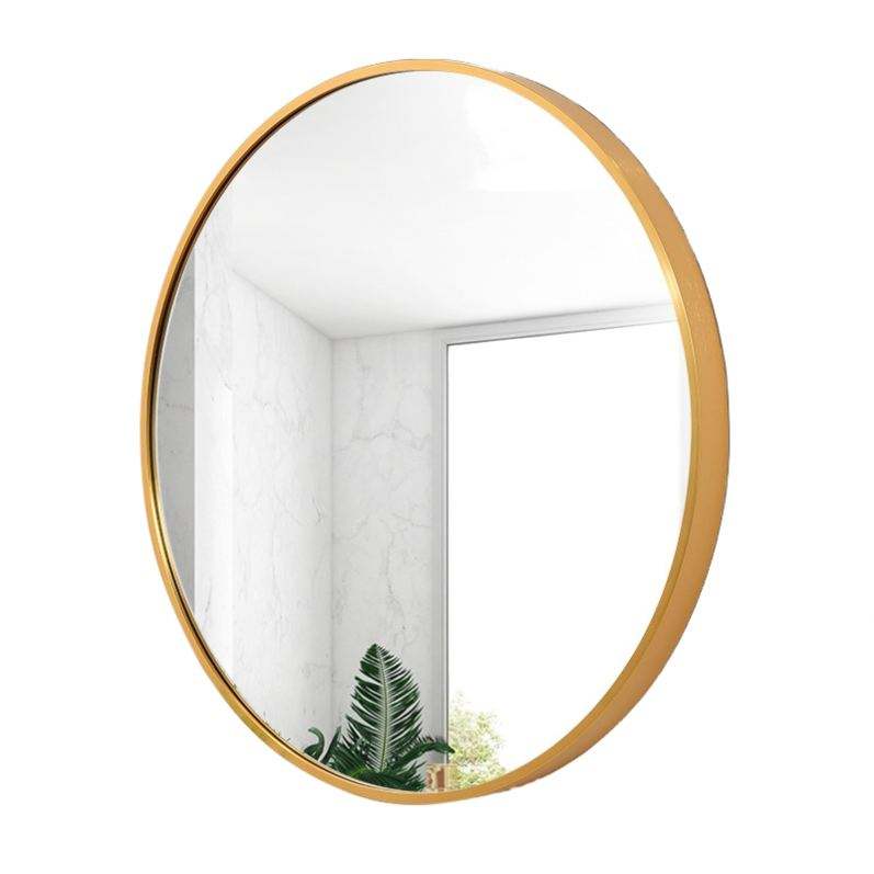กระจกแต่งหน้าติดผนังทรงกลมกรอบเหล็กสีทองทันสมัย พร้อมลูกบอลโลหะตกแต่งทรงกลมแบบใหม่