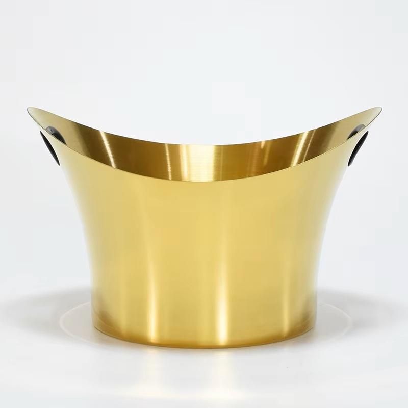ถังน้ำแข็งแชมเปญโลหะสีทองทันสมัยสำหรับโรงแรมและบาร์ รูปทรงเรือสีทอง ใช้สำหรับแช่ไวน์และเบียร์สำหรับร้านอาหารและงานจัดเลี้ยง