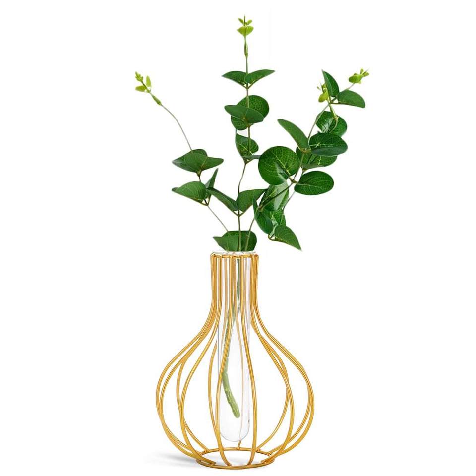 แจกันดอกไม้โลหะสีทองทันสมัยขนาด28x14x9ซม. ทำจากทองเหลืองตกแต่งบ้านวัสดุอลูมิเนียมประดับโต๊ะ