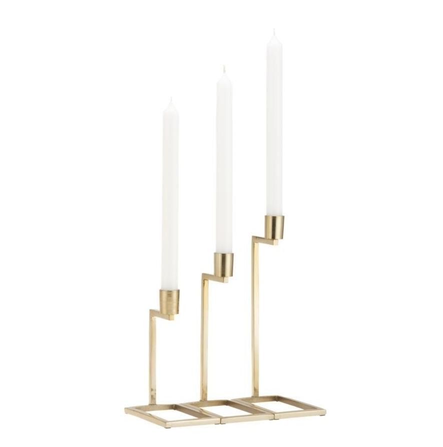เชิงเทียนโลหะสีทองทันสมัยแบบสามชั้น ตกแต่งโต๊ะอาหาร จุดประกายสวยงามสำหรับห้องนั่งเล่นและห้องรับประทานอาหาร