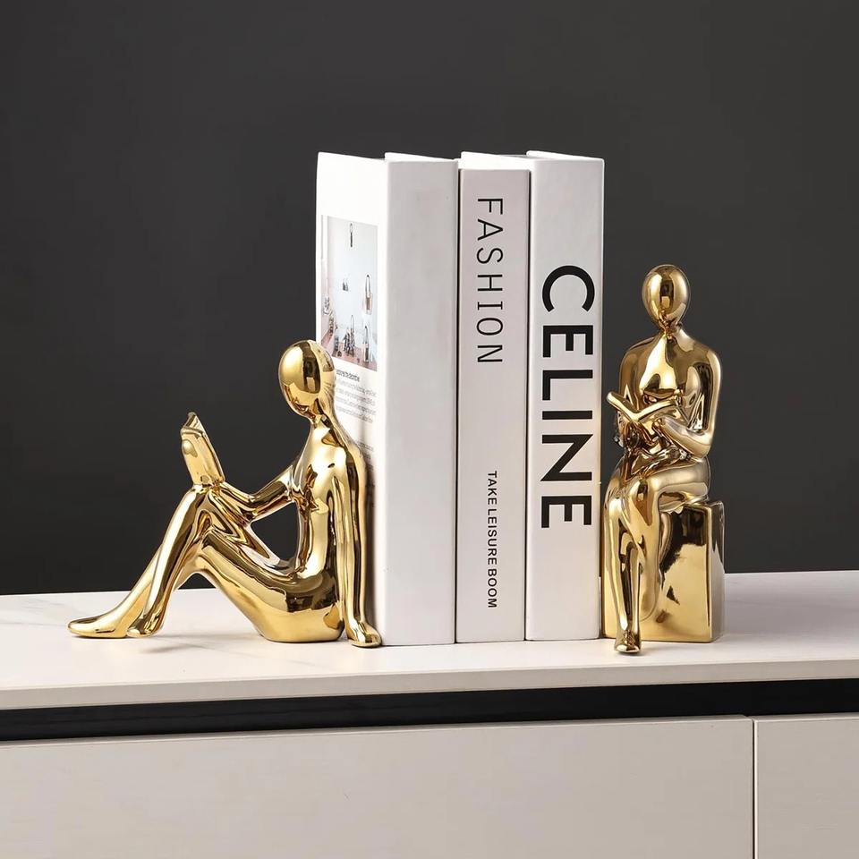 ที่กั้นหนังสือรูปคนอ่านหนังสือสีทองทันสมัย สำหรับตกแต่งบ้าน สำนักงาน ห้องนั่งเล่น โต๊ะทำงาน พื้นที่รอคอย และพื้นที่ที่เป็นทางการ