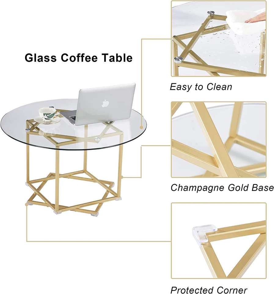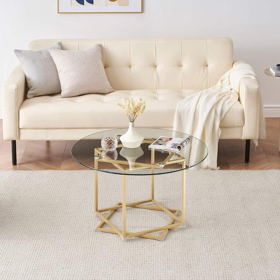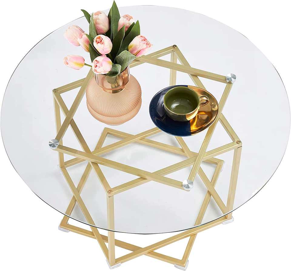 โต๊ะข้างทรงกลมกระจกสีทองทันสมัย โต๊ะกาแฟหรูหราสำหรับห้องนั่งเล่น ห้องนอน สำนักงาน ระเบียง โต๊ะตกแต่งโครงโลหะ