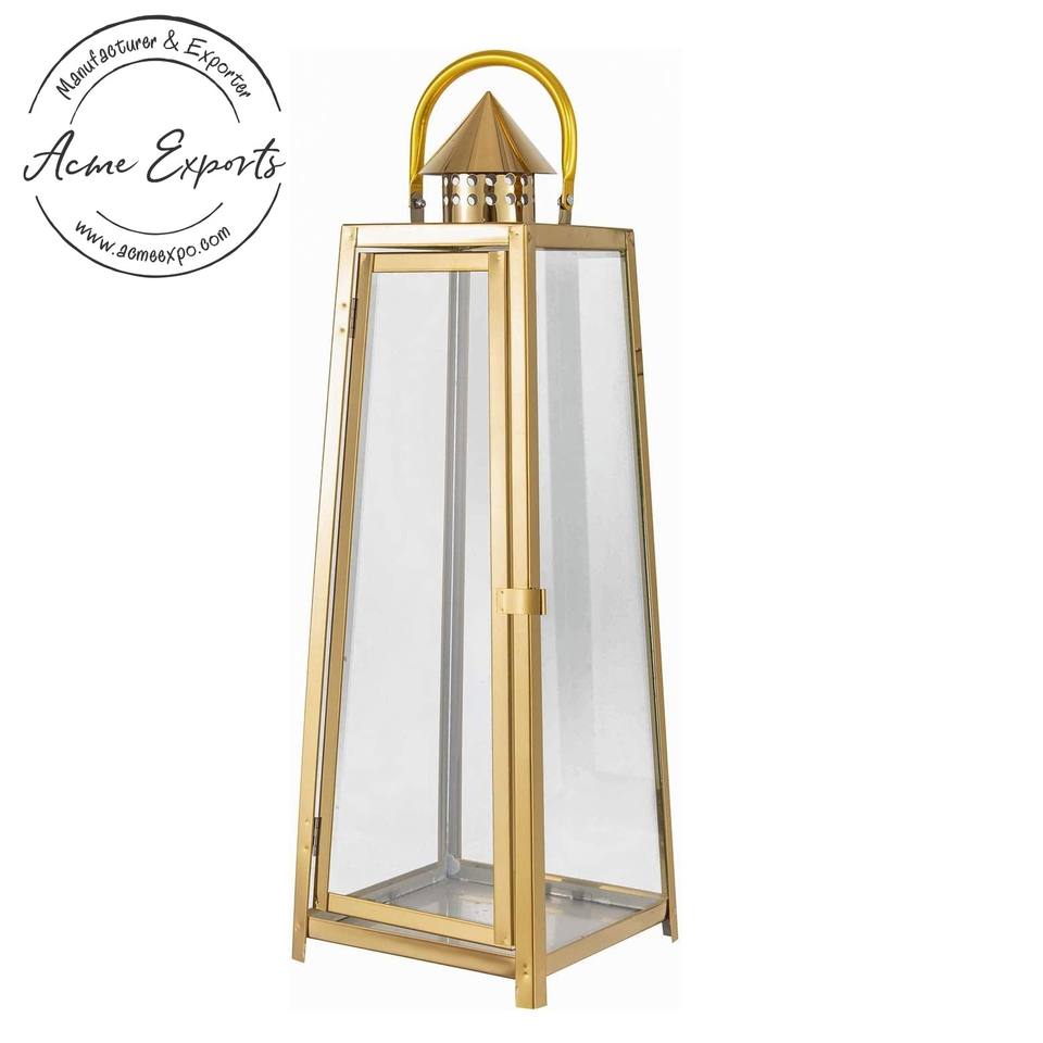 โคมไฟสแตนเลสสีทองแบบทันสมัยพร้อมแผงกระจกใสรูปทรงเรียวเหมาะสำหรับตกแต่งบ้านในร่มและใช้งานกลางแจ้ง