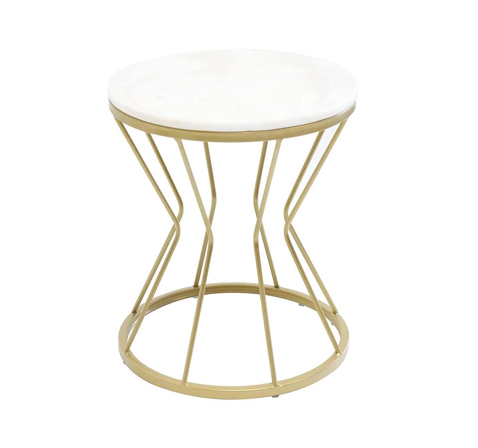 ฐานเหล็กสแตนเลสสีทองแบบโมเดิร์นโต๊ะกลมขนาดเล็กพร้อมหินอ่อนด้านบนห้องนั่งเล่นโซฟาโต๊ะข้างเฟอร์นิเจอร์สำหรับใช้ในบ้าน