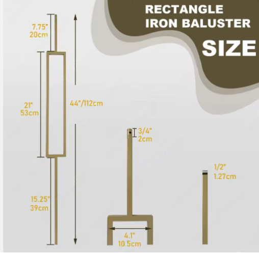 ราวบันไดเหล็กดัดทรงสี่เหลี่ยมผืนผ้าสีทองทันสมัย ทนสนิม ทาสีได้ แบบกลวง สำหรับตกแต่งระเบียง วิลล่า โรงแรม