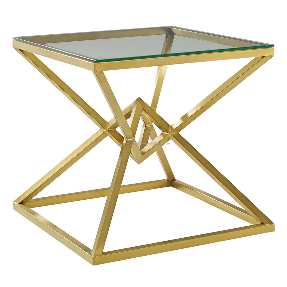 โต๊ะข้างทำจากเหล็กสีทองแบบทันสมัยพร้อมกระจกด้านบนสินค้าทำด้วยมือผลิตตามสั่งทำจากโลหะทำมือ