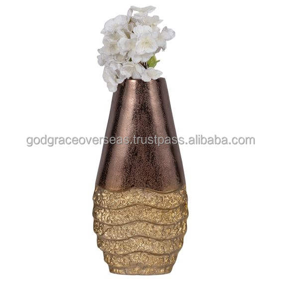 แจกันดอกไม้โลหะสีทองเหลืองโบราณสไตล์วินเทจสำหรับตกแต่งบ้านและสวน