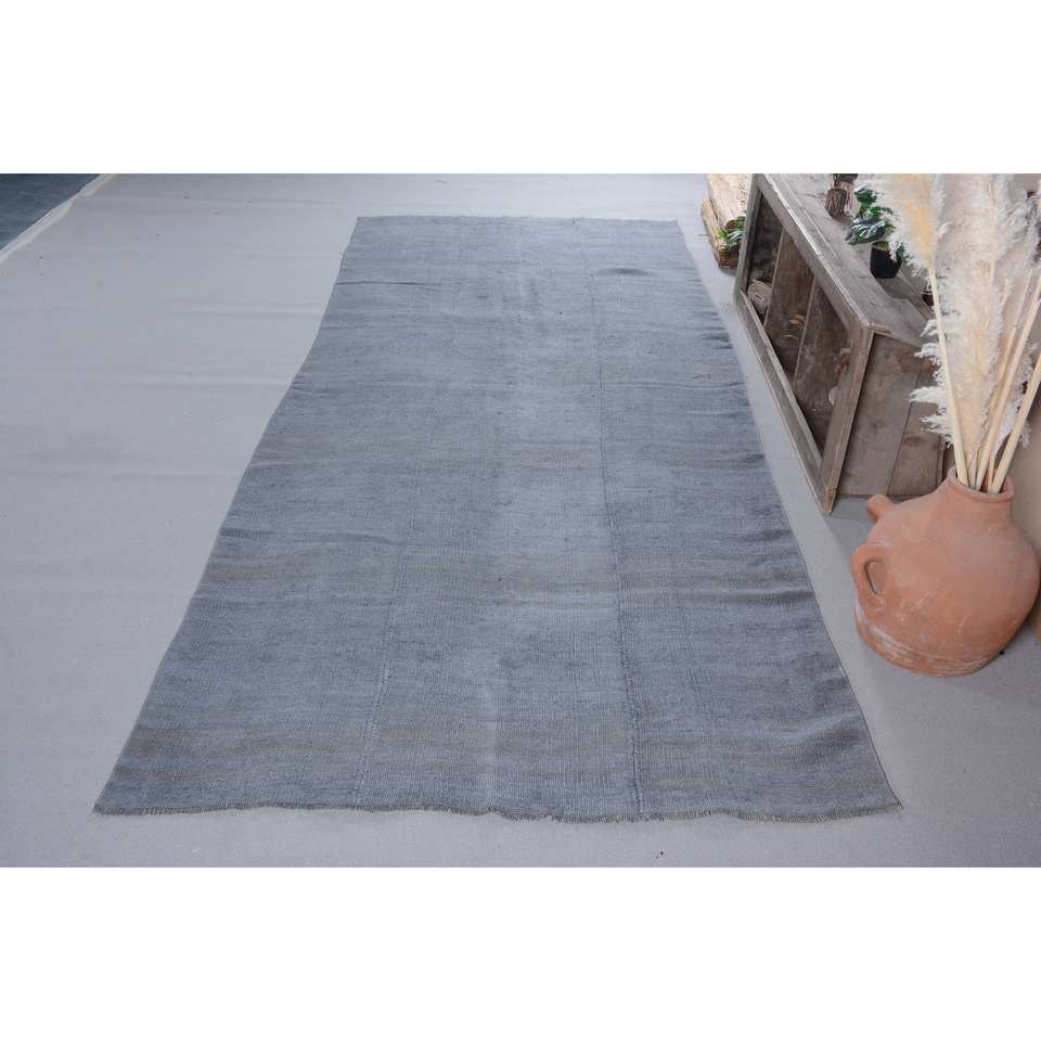 พรมขนสัตว์สีเทาขนาด5.6x13.5ฟุตสไตล์วินเทจสไตล์ทาบริซแบบเย็บปะติดปะต่อกันสำหรับการรองยางสำหรับทางเข้าห้องวัยรุ่น