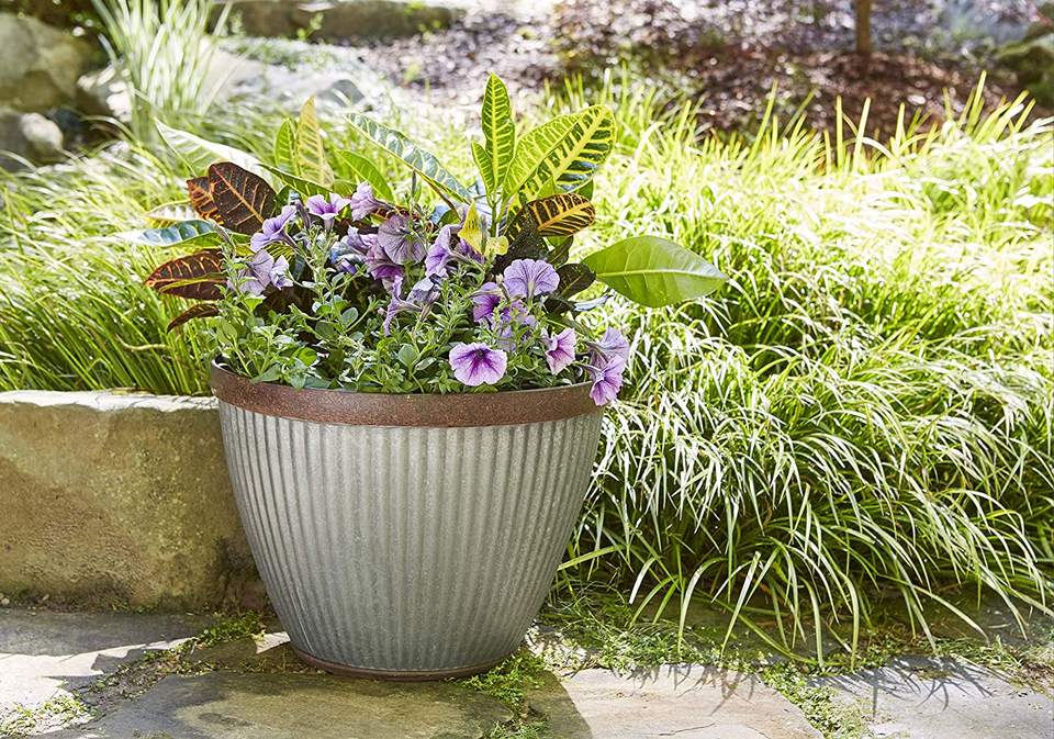 กระถางต้นไม้โลหะทรงกลมสีเทาแบบโมเดิร์น ชุบสังกะสี เป็นมิตรกับสิ่งแวดล้อม ใช้ได้ทั้งภายในและภายนอกอาคาร สำหรับใช้ในบ้าน พร้อมขนาดที่ปรับแต่งได้