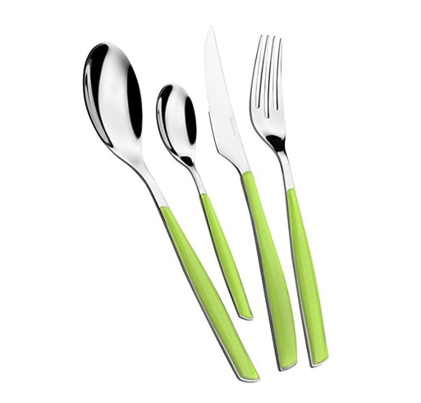เครื่องใช้บนโต๊ะอาหารด้ามสีเขียวทันสมัยพร้อมหัวสีเงินสำหรับรับประทานอาหารและโฮสติ้งในชีวิตประจำวันแบบมีสไตล์สำหรับครอบครัวขายส่งจากอินเดีย