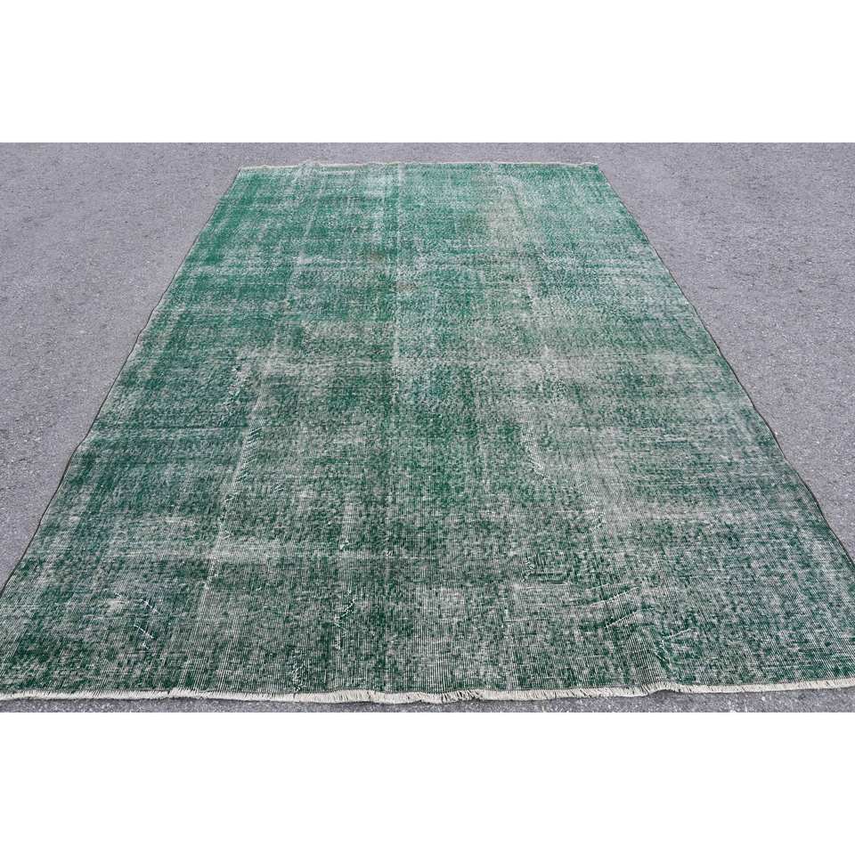 พรมขนสัตว์สีเขียวแบบตุรกีขนาด6.9x10.6ฟุตพรมปูพื้นแบบแบนสำหรับห้องนั่งเล่นเทคนิค3D ทำจากยาง