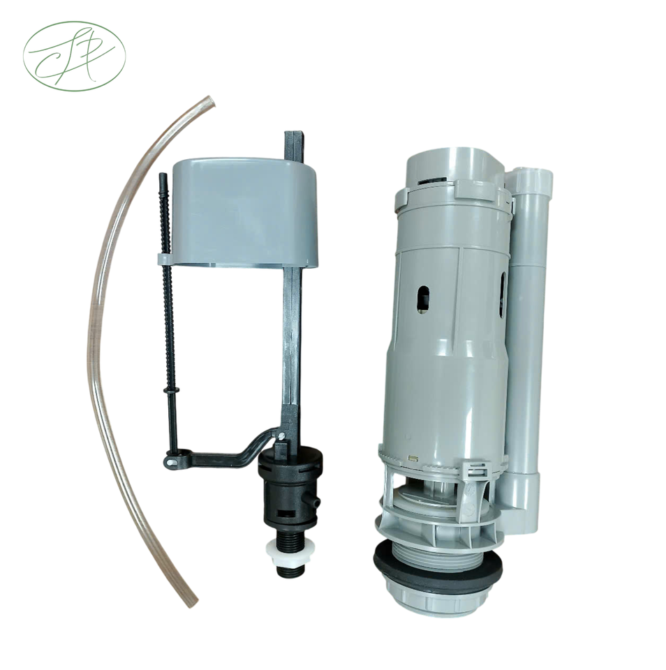 ชุดถังชักโครกพลาสติก ABS สีเทาทันสมัยปุ่มกดสองทางเป็นมิตรกับสิ่งแวดล้อม