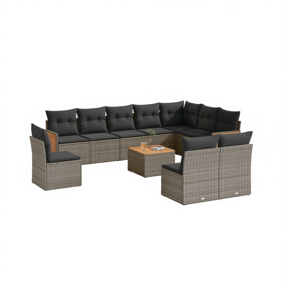 ชุดโซฟาหวายสีเทาโมเดิร์นสำหรับสวน 10+ ที่นั่ง เฟอร์นิเจอร์กลางแจ้ง ทนทานต่อสภาพอากาศ ดีไซน์ร่วมสมัย