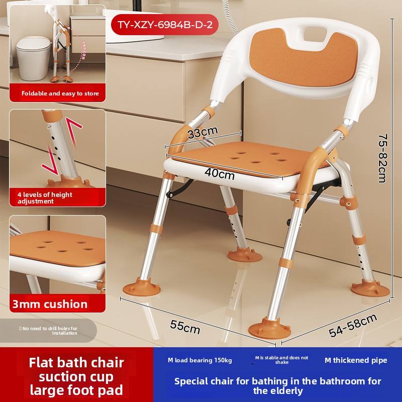 เลือกเลยวัสดุ: เก้าอี้อาบน้ำแบบแบน-สีส้ม-ขาแบบถ้วยดูด