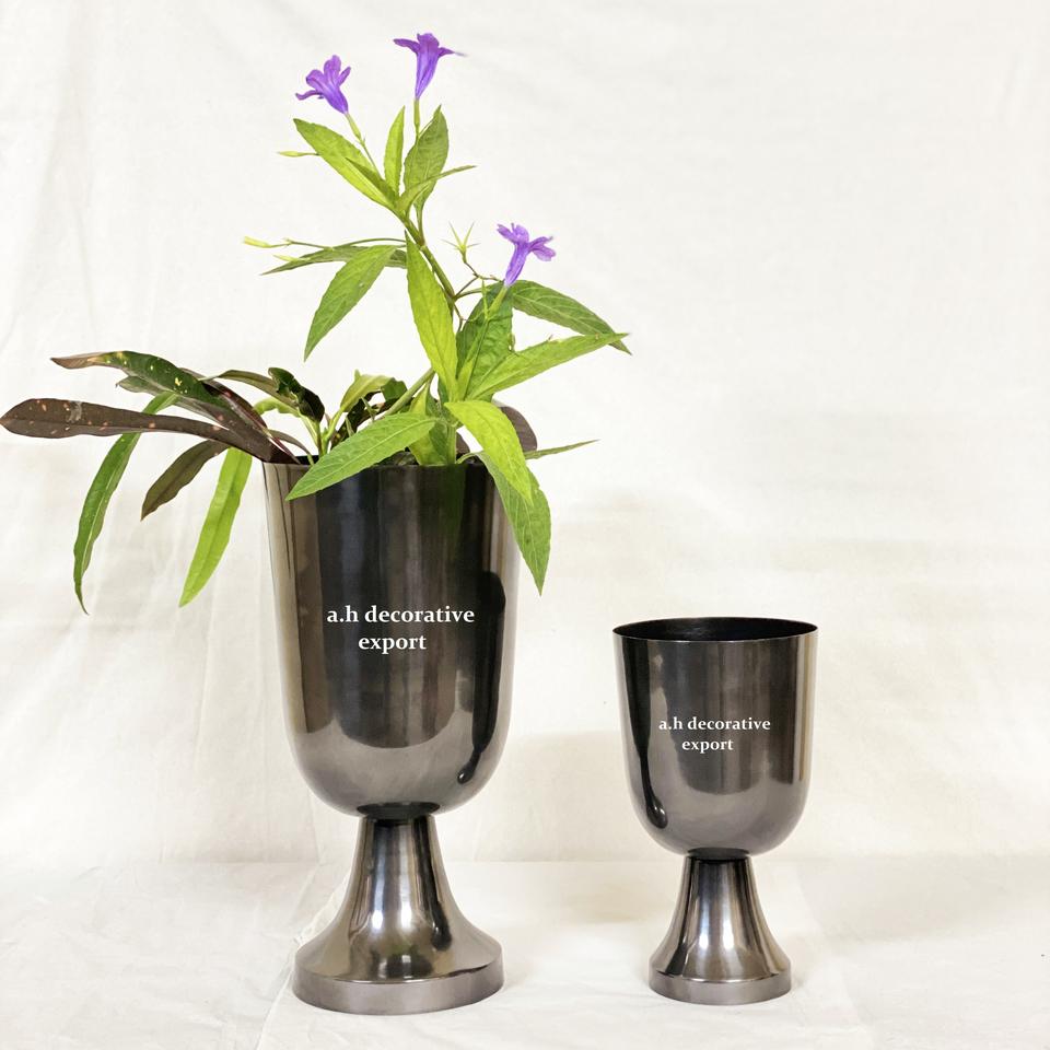 ชุดแจกันทรงทรัมเป็ตสีดำเมทัลลิกทันสมัย กระถางดอกไม้ ของตกแต่งภายในบ้าน แจกันตั้งพื้น รูปทรงโถ รักษ์โลก เหมาะสำหรับงานแต่งงาน ตกแต่งบ้านและสำนักงาน
