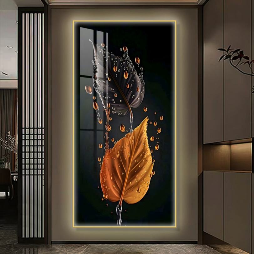 ภาพพิมพ์ใบไม้แบบ HD สมัยใหม่ ไฟ LED ขายดี ของตกแต่งบ้าน ภาพศิลปะติดผนัง ภาพพิมพ์บนคริสตัลพอร์ซเลน ขายส่ง ปรับแต่งได้