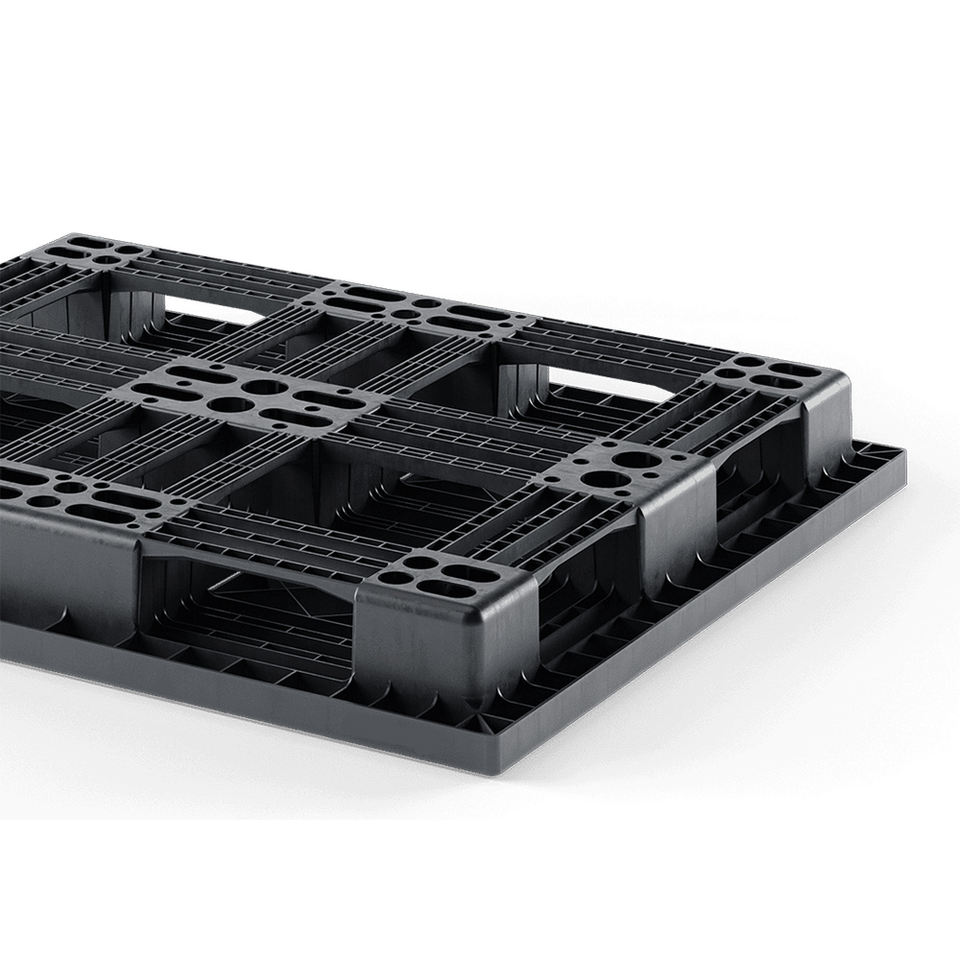 พาเลทพลาสติก HT-013 รุ่นใหม่ ดีไซน์เรียบง่าย คุณภาพสูง ผลิตจากโพลีโพรพิลีน/HDPE รับน้ำหนักได้ 13,227 ปอนด์ สำหรับงานอุตสาหกรรม