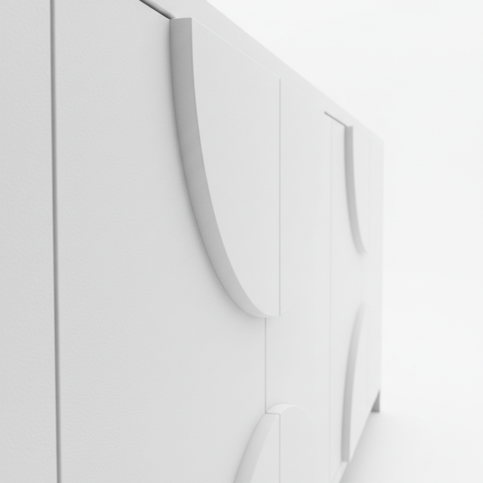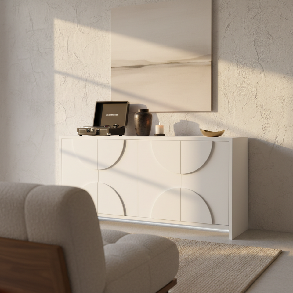 ตู้ข้างไม้ทรงครึ่งวงกลมทันสมัย ตู้ไม้ทรงครึ่งวงกลม 4 ประตู ตู้ไม้ทรงโค้ง ดีไซน์โค้งทันสมัยสำหรับจัดเก็บ
