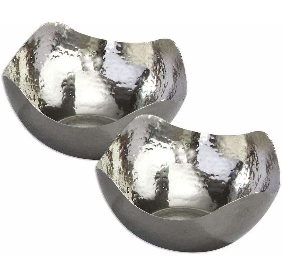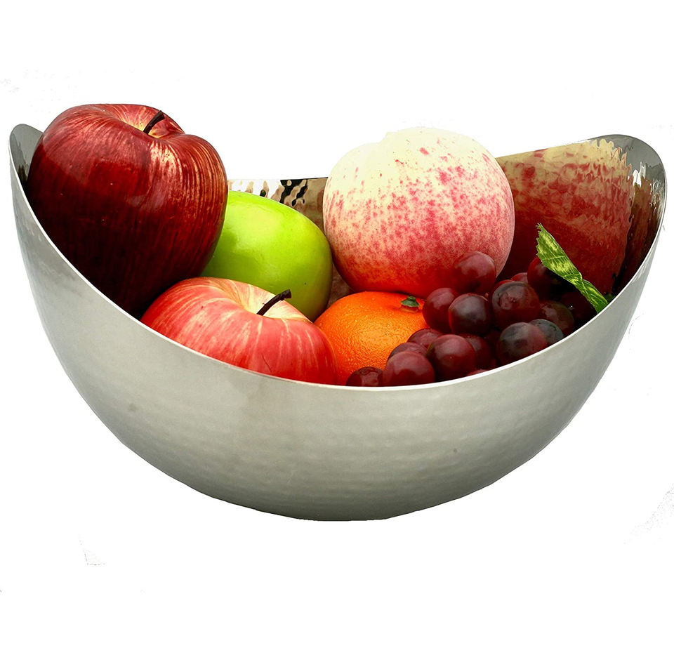 ชามเสิร์ฟสลัดผลไม้ทำจากอลูมิเนียมทรงโค้งทำจากเหล็กชุบเงินสำหรับรับประทานอาหารที่บ้านโต๊ะรับประทานอาหาร
