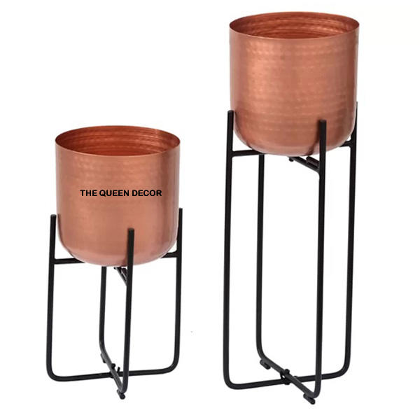 ชุดกระถางต้นไม้ทำจากโลหะทองแดงที่ทันสมัยมาใหม่ชุดปลูกดอกไม้ในร่มสีดำสำหรับตกแต่งสวน
