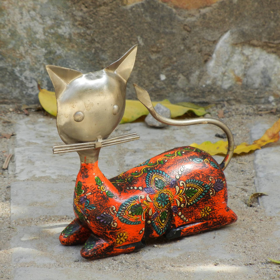 ชื่อผลิตภัณฑ์:รูปปั้นแมวแกะสลักทำจากไม้ & โลหะ