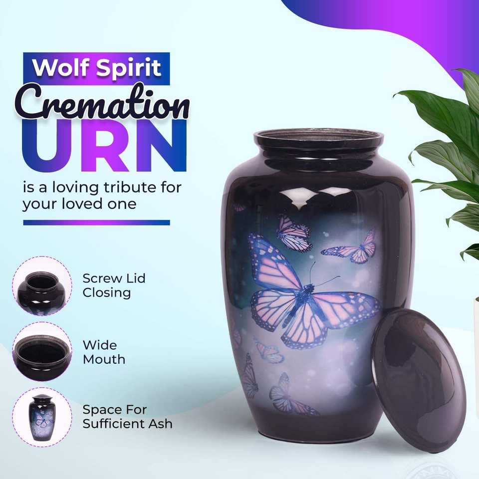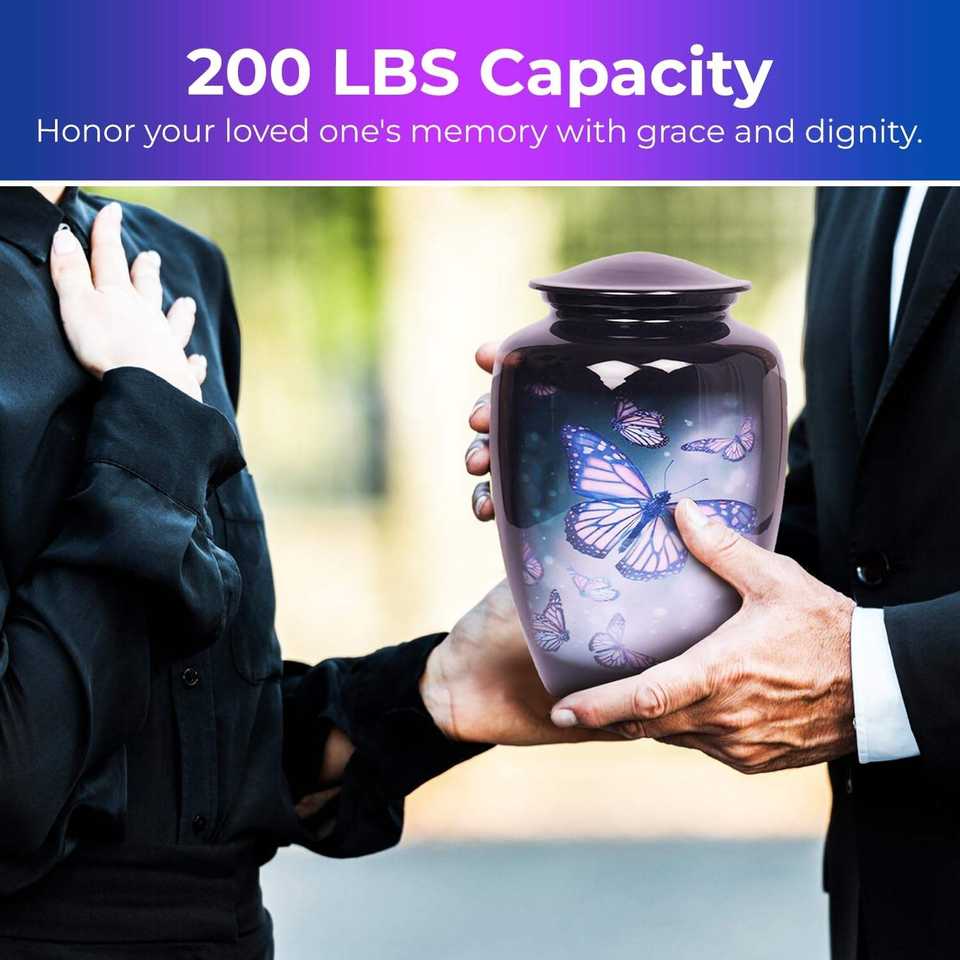 โลงใส่ศพสำหรับผู้ใหญ่สีดำ200ปอนด์ทำด้วยมือทันสมัยดีไซน์รูปผีเสื้อหรูหรา