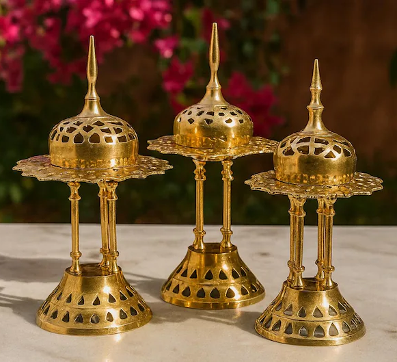เครื่องเผาธูปทองทำมือทันสมัยพร้อมถ้วยหรูหราและฐานตาข่ายตัดดาวสำหรับผู้ถือ bakhoor
