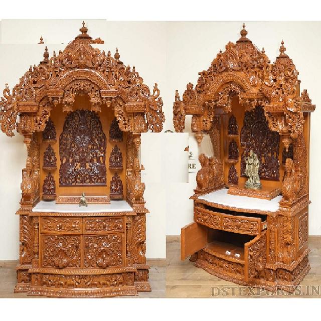Traditional Wooden Mandir for Krishna Devotees