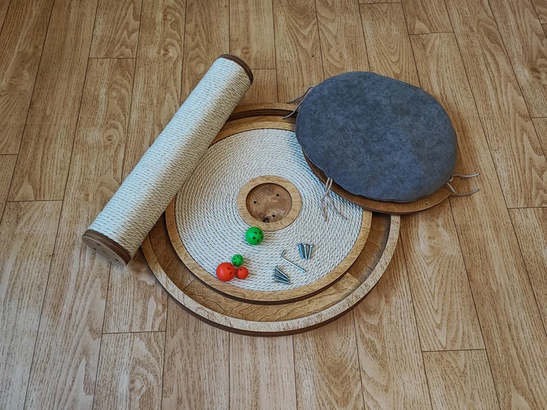 ของเล่นแมวข่วนแบบทำมือทันสมัยสำหรับคนรักแมวเฟอร์นิเจอร์สัตว์เลี้ยงผลิตด้วยเชือกป่านศรนารายณ์วัสดุไม้ของขวัญคริสต์มาสสำหรับคนรักแมว