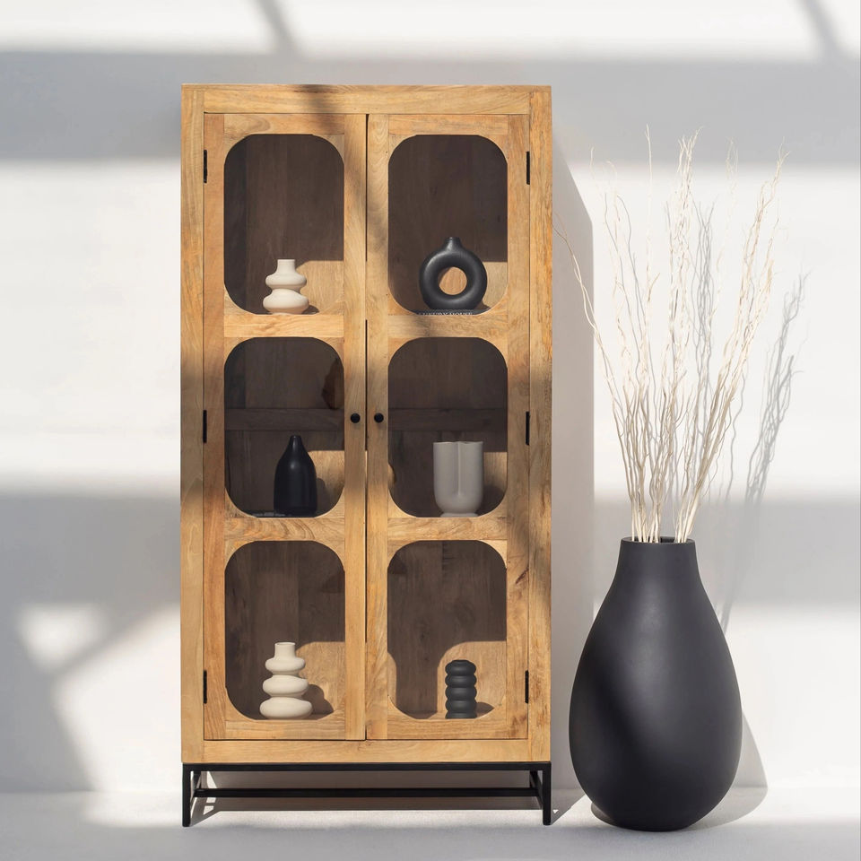 ตู้โชว์อเนกประสงค์ทำมือสไตล์โมเดิร์น ไม้มะม่วงแท้ กระจกใสคุณภาพสูง แข็งแรงทนทาน เหมาะสำหรับจัดเก็บของใช้ในบ้าน