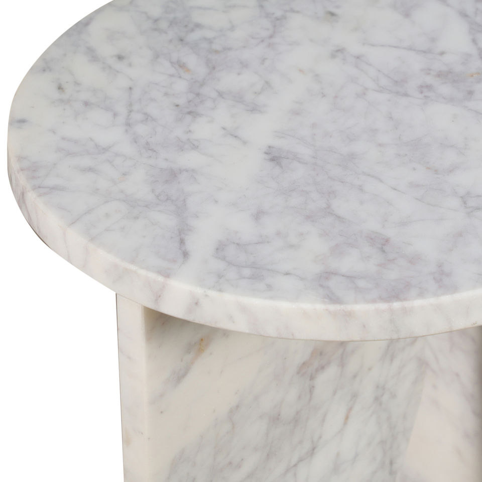 โต๊ะข้างเตียงหินอ่อนธรรมชาติทำมือสไตล์โมเดิร์นสำหรับห้องนอนและห้องรับประทานอาหาร ดีไซน์ฐานสีขาว เฟอร์นิเจอร์หรูหรา
