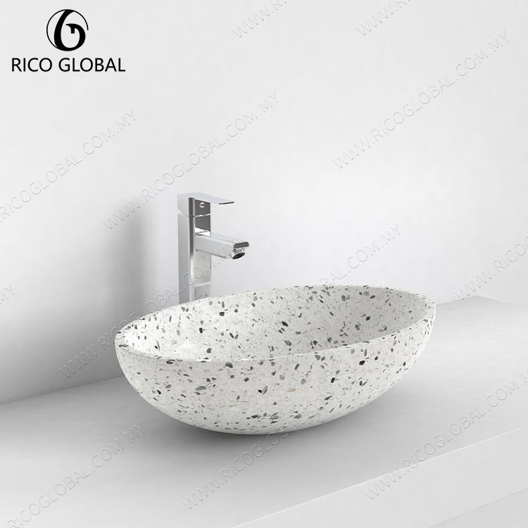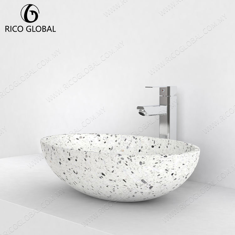 อ่างล้างหน้าแบบเคาน์เตอร์ทำมือสไตล์เทอร์ราซโซ่สมัยใหม่ สำหรับห้องน้ำ ห้องครัว โรงแรม โรงเรียน บ้าน ผลิตจากซีเมนต์ ทำในมาเลเซีย