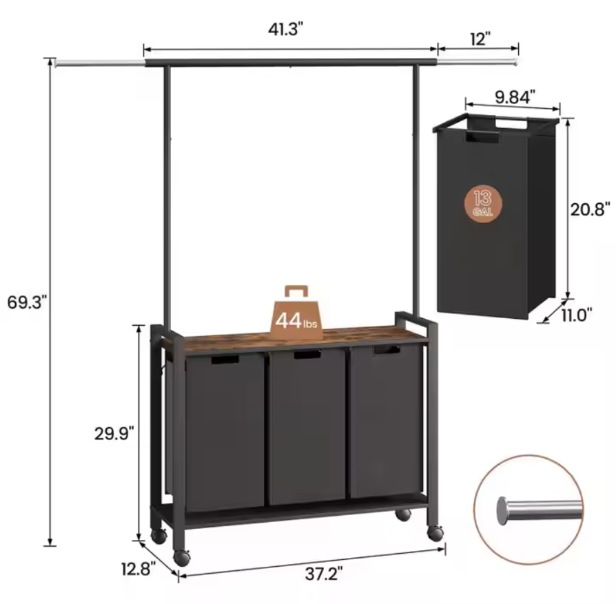 69.3 "H (ความสูงของ dustbin29.9") x 37.2 "W x 12.8" D