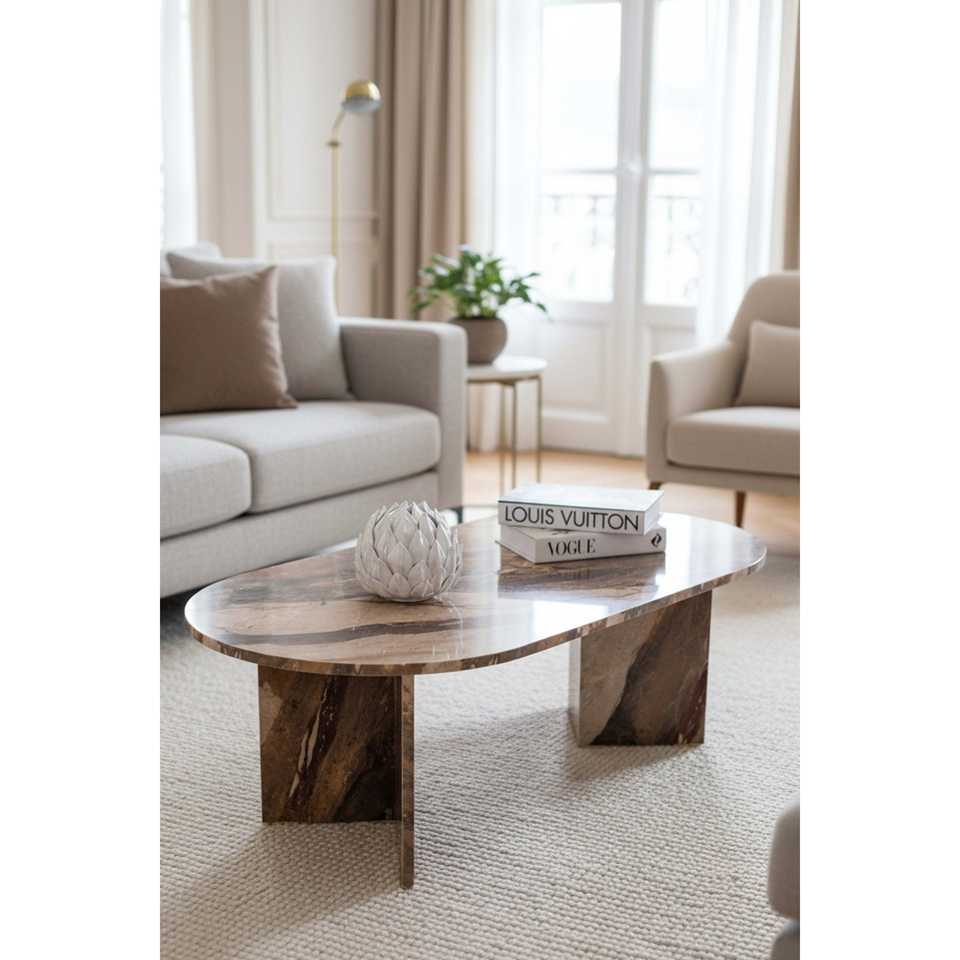โต๊ะกาแฟทรงสี่เหลี่ยมผืนผ้า โมเดิร์น ฮาร์โมนี่ โตเกียว ท็อปหินอ่อน พับได้ ปรับระดับความสูงได้ โครงไม้สไตล์มินิมอล สำหรับห้องนั่งเล่น