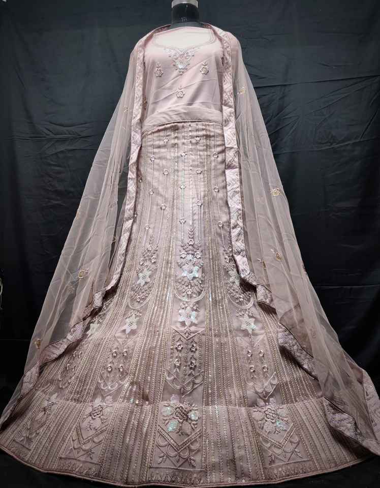 ชุดเลเฮนกาโชลีผ้าเน็ตปักเลื่อมหนักแบบทันสมัย ความยาวถึงพื้น กระโปรงบาน 3 เมตร ผ้าคลุมไหล่ปักลายบุตติขนาด 2.5 เมตร เสื้อเบลาส์ขนาด 1.2 เมตร สำหรับฤดูร้อน