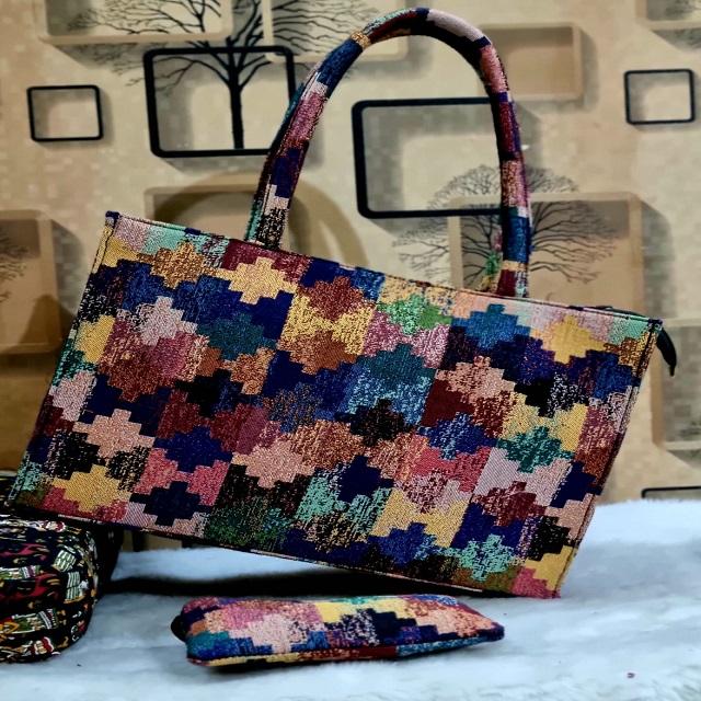Modern Heavyweight Poly Cotton Jacquard Flower Fabric Breathable Woven Yarn Dyed Warp Upholstery for Women's Handbags