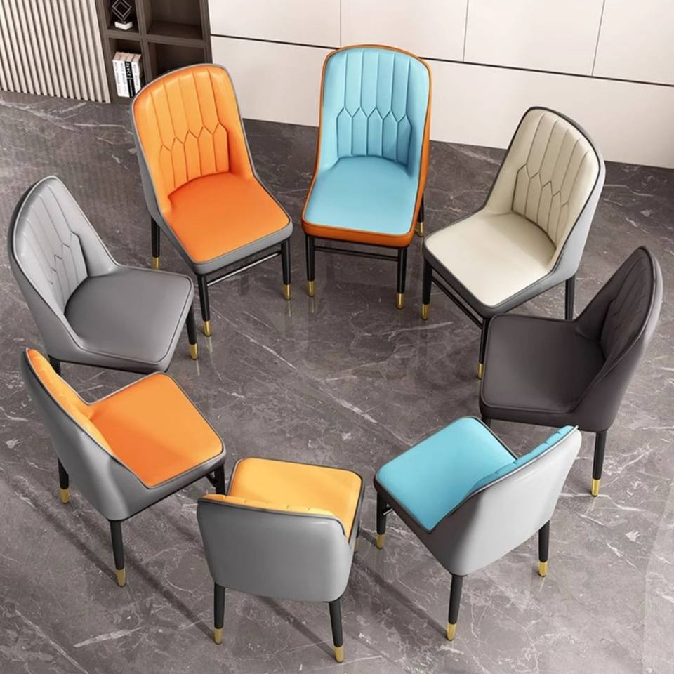 เก้าอี้รับประทานอาหารที่มีพนักพิงสูงทันสมัยสำหรับโรงแรมและร้านอาหารหนังทนทานพร้อมขาเหล็กแบบวางซ้อนกันได้และพกพาได้สำหรับใช้ในโรงอาหาร