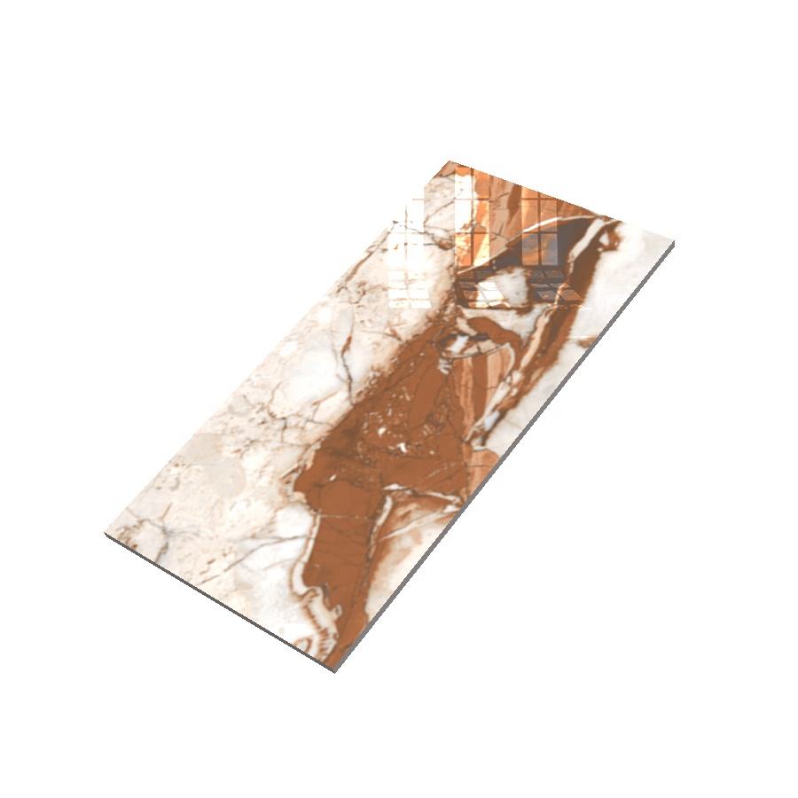 กระเบื้องพอร์ซเลนขนาด 600x1200 มม. รุ่นโมเดิร์น เงาสูง ดีไซน์ลายหินอ่อน ผิวเคลือบดิจิตอล ทนกรด ป้องกันแบคทีเรีย รับประกัน 5 ปี