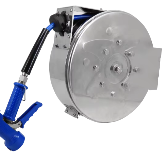 ม้วนเก็บสายลมแรงดันสูงแบบยืดหดได้ รุ่นใหม่ ผลิตจากสแตนเลส 304 แบบสองชั้น ติดผนัง
