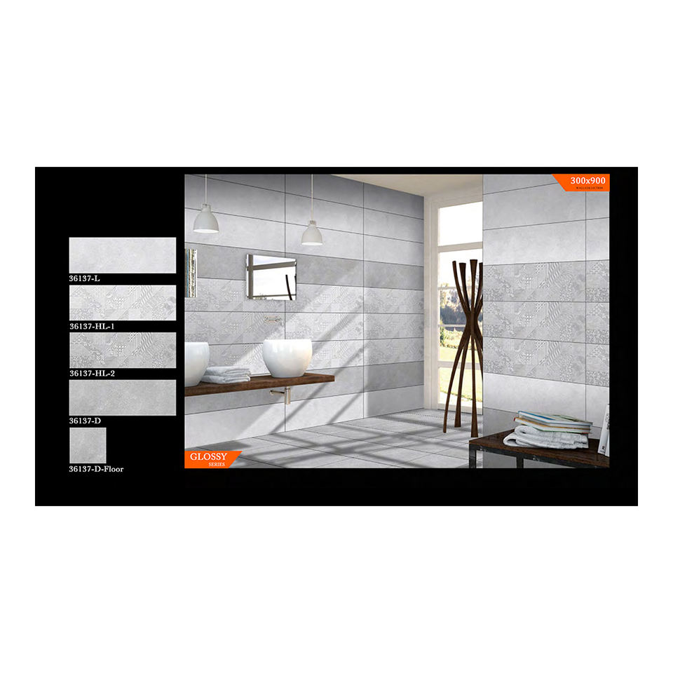 กระเบื้องผนังพอร์ซเลนสีขาวมันวาวขนาดใหญ่30X90มม. คุณภาพสูงทันสมัยเนื้อแข็งสำหรับการตกแต่งภายในวิลล่าอินเดีย