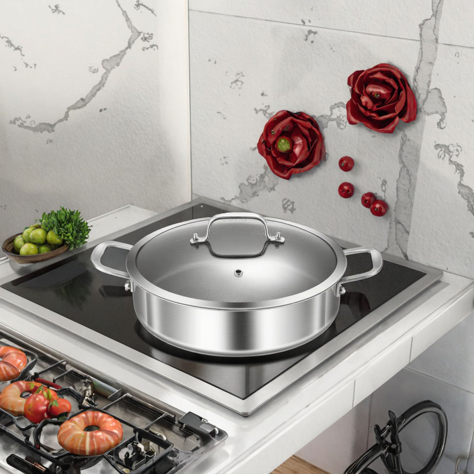 หม้ออะลูมิเนียมคุณภาพสูงทันสมัย ดีไซน์คลาสสิกอเนกประสงค์ ใช้ได้กับเตาแก๊สและเตาแม่เหล็กไฟฟ้า น้ำหนักเบา ฝาแก้วใส