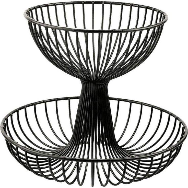 ตะกร้าผลไม้โลหะ 2 ชั้น สีดำ คุณภาพสูง ทันสมัย สำหรับครัว ตะกร้ากรองน้ำ ตะกร้าใส่ขนมปัง ผัก และของว่าง